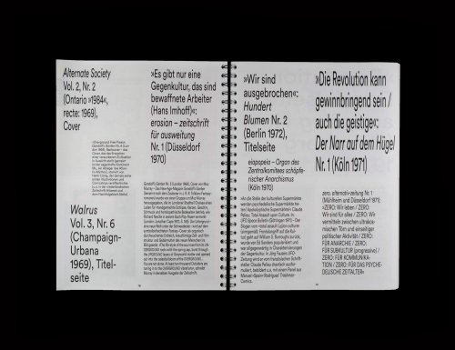 Ausstellungskatalog "Unter dem Radar – Underground- und Selbstpublikationen 1965 – 1975" erschienen bei Spector Books. Fotografiekonzept und Umsetzung Design in Zusammenarbeit mit dem Studio PrillViecelliCremers